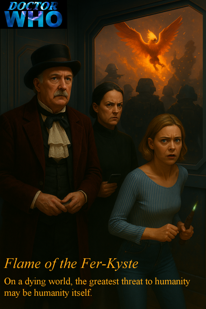 The planet is inhabited by the Fer-Kyste, harpy-like creatures able to generate bursts of fire at will, and they resent humanity’s presence on Ampersand Thrax. With only mechanised mining suits to defend themselves, the HEF are fighting a losing battle, under near-constant attack from these pyrokinetic aliens. But an expedition to their nest-city high in the mountains will change everything. As Freja struggles to keep her new friends alive long enough to complete their important mission, the Doctor is pushed to his limits as he must decide how far he is willing to go to save the lives of those who would see him dead and discover whether even he can survive the flame of the Fer-Kyste…